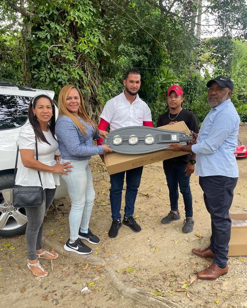 ING. Humbert Germosen entrega donación de lamparas por todo el distrito Municipal de Las Lagunas en conjunto con Mercedes Sánchez y Rosy Santana..Bajo el firme compromiso de nuestro síndico, seguíamos el alumbrado de las comunidades de Las Lagunas.